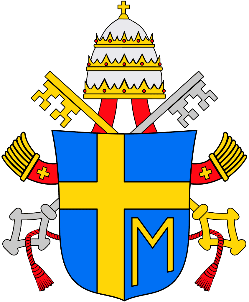 Durant les grands troubles post-Vatican II il y eut aussi un étranger au règne très long, de 26 ans 1/2. Il s’agit de l’antipape Jean-Paul II. Il avait également dédié son blason à la Vierge Marie, avec un grand M qui se voulait marial. Jeune il fût Comédien, et venait de la Pologne.