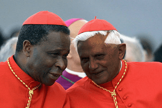 Les cardinaux B. Gantin et J. Ratzinger. (Photo retouchée humoristiquement)